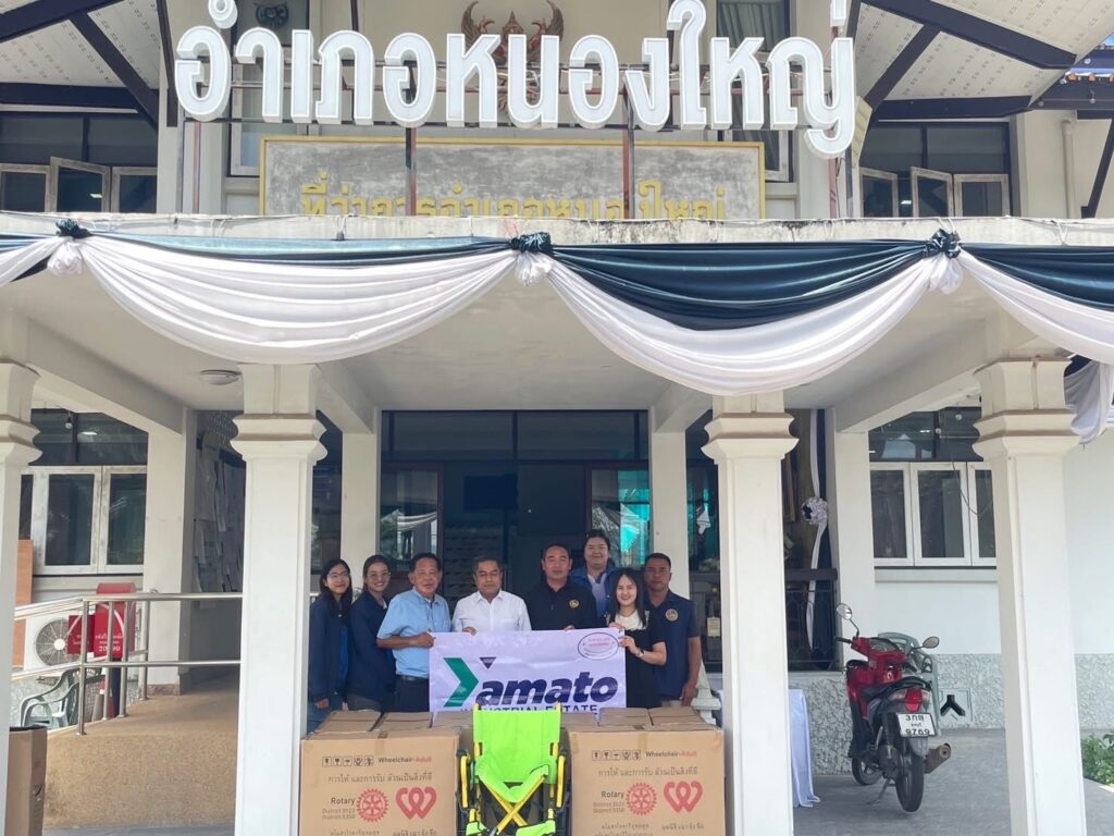 วันพุธที่ 11 มีนาคม 2569 นายพจนารถ สิงห์สู่ถ้ำ ผู้จัดการนิคมอุตสาหกรรมยามาโตะ เป็นตัวแทน นายมงคล สุขเกษมไพศาล ประธานกรรมการผู้จัดการ บริษัท อเมริกัน บิวเดอร์ จำกัด นิคมอุตสาหกรรมยามาโตะ และโรตารี่ ไต้หวัน มอบรถเข็นผู้ป่วย (Wheelchair) ให้แก่ โรงพยาบาลหนองใหญ่ และอำเภอหนองใหญ่ จังหวัดชลบุรี